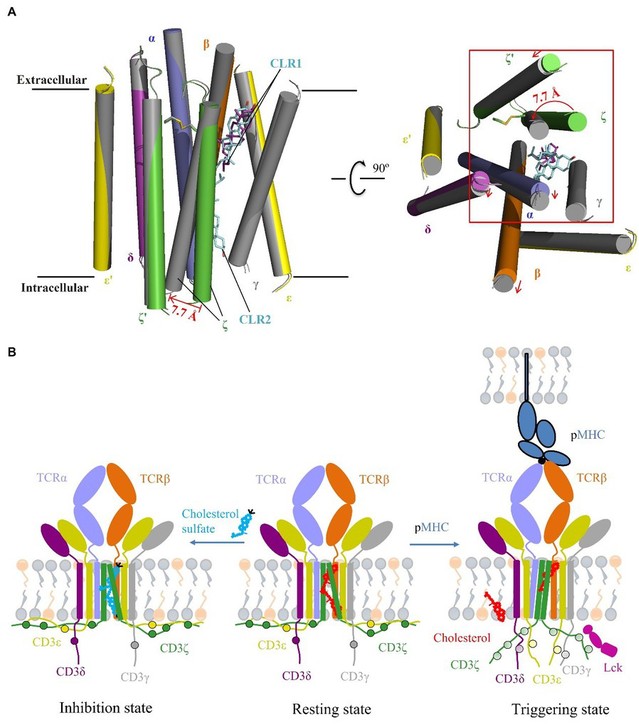 胆固醇(CLR)和硫酸胆固醇(CS)结合状态下的TCR复合物结构